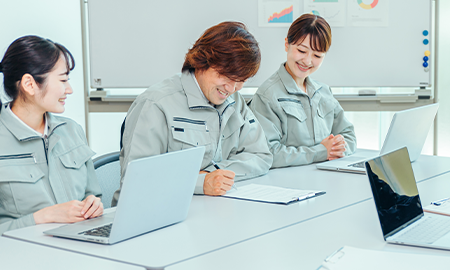 株式会社○○工業では、発注いただく方々、従事される方、すべての方から感謝していただける仕事を行うべく、最大限の努力を惜しまず業務にあたっております。